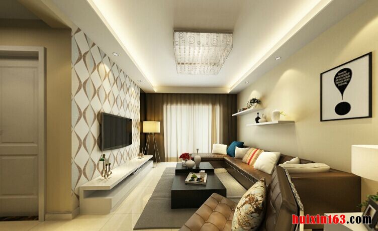 简约风的装修设计,展现出来的是一种简单却又不失时尚的美感,对于整个空间的装饰布置,大量的留白处理,营造一个轻松惬意的居室环境,在客厅的装饰布置当中,平顶式的石膏板吊顶,搭配上一盏亮丽的水晶吊灯,让空间的装饰效果显得更加的时尚、自然,亮丽的地砖与吊顶上下相互呼应,并且与整个空间的色彩相互协调统一,落地窗的设计,搭配上轻质的窗帘,让空间的采光变得比较柔和,个性的电视背景墙设计,搭配上富有动态感的壁纸,让空间显得更加有设计看点,如果在电视柜上适当的添置一些绿植,通过富有跳跃性的绿植点缀环境,让空间色彩效果显得更加的舒适。